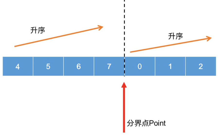 有序数组即一个有序数字以某一个数为轴,将其之前的所有数都轮转到数组的末尾所得