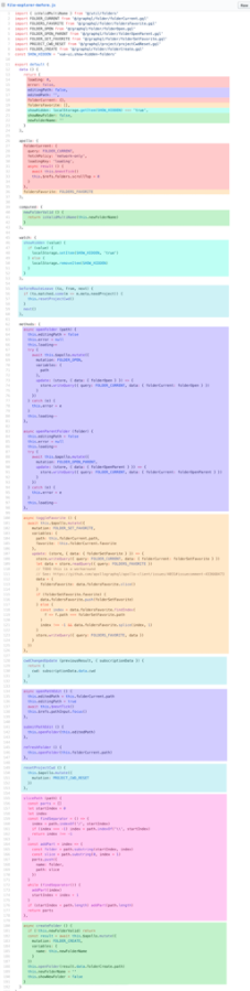 假设一个组件是一个大型组件,其内部有很多处理逻辑关注点(对应下图不用颜色)